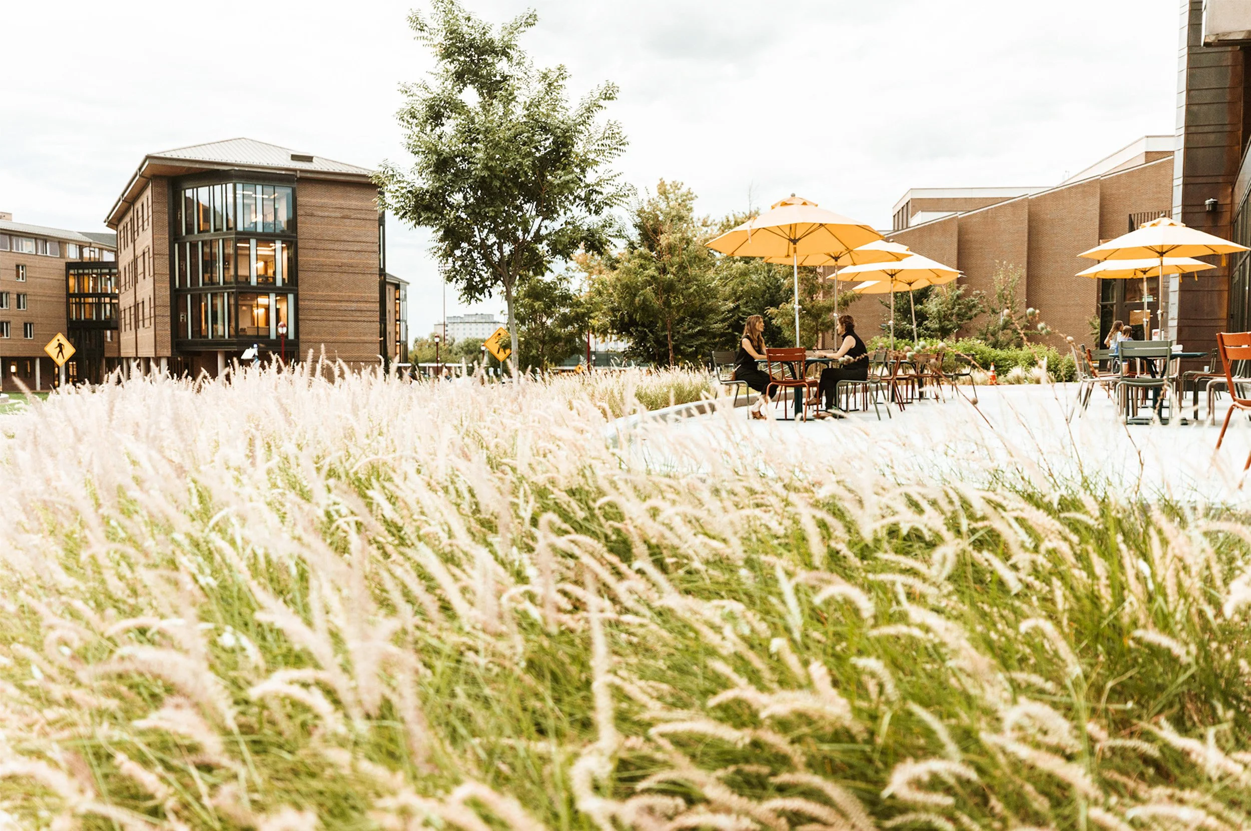 The Burwell Career Center landscape echoes the steppe-inspired plantings on the green roof with resilient selections to provide year-round interest. The LEED platinum project in collaboration with Lake Flato Architects bridges architecture and site to create a unified indoor-outdoor experience. Sustainable design strategies include rain gardens to detain and filter stormwater, and high SRI materials to mitigate reflected heat. Designed as one of Colorado’s first mass timber structures, the Center is anticipated to use 70% less energy than comparable university buildings.